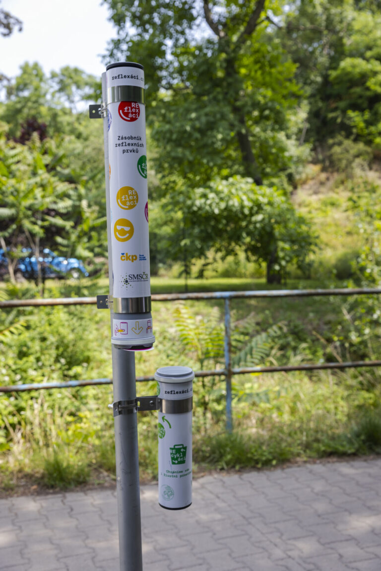 Zásobník obsahuje náplň 500 nebo 1000 reflexních samolepek vyrobených z certifikované reflexní fólie s viditelností až 400m. Každý občan si tak může samolepky vzít na místech zvýšeného rizika střetu chodce nebo cyklisty s jedoucím vozidlem a okamžitě tak zvýšit svou bezpečnost.